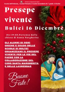 19:00 - Presepe vivente a Bultei organizzato dalla scuola dell'Infanzia, Primaria e Secondaria di Primo grado di Bultei in collaborazione con il Coro dei Confratelli di Santa Margherita di Bultei e con l'accompagnamento delle Launeddas