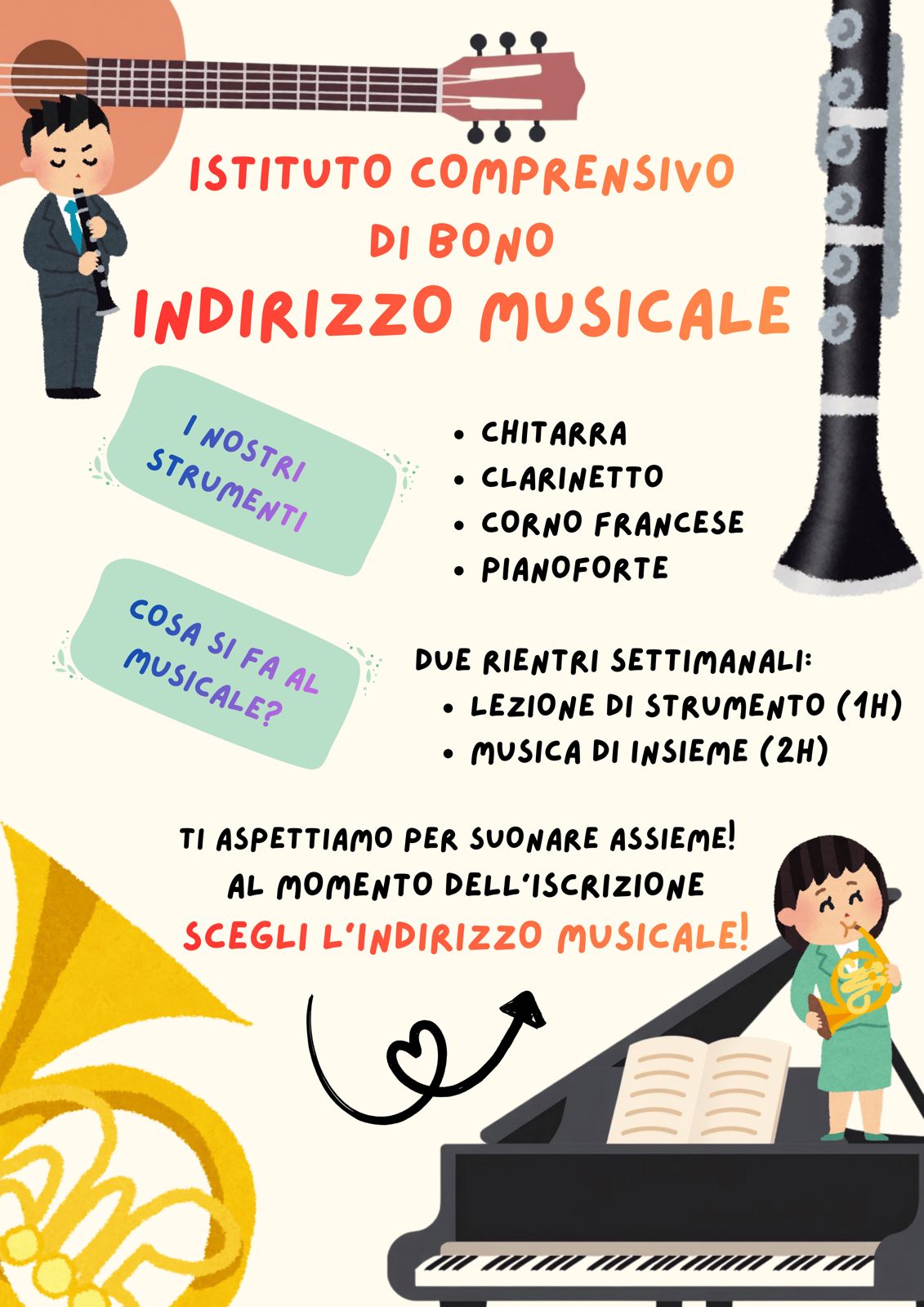 Vieni a suonare con noi!Sono aperte le iscrizioni all’indirizzo musicale per l’anno scolastico 2026/2027.Scegli l’indirizzo musicale!