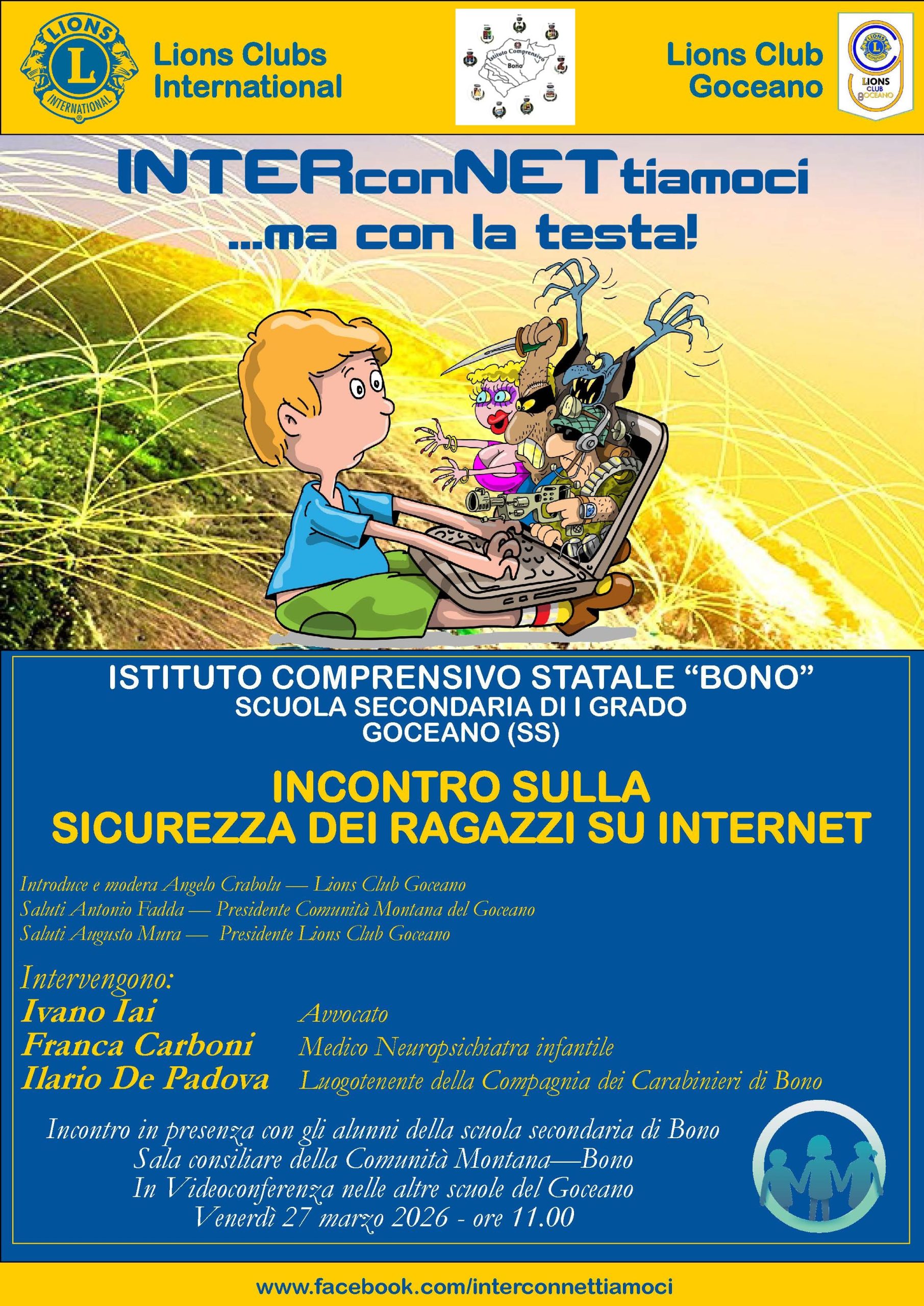 Lions Club International e Goceano, Compagnia dei Carabinieri di Bono e Istituto Comprensivo Bono per la sicurezza in rete dei ragazzi del Goceano.