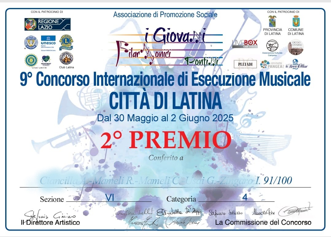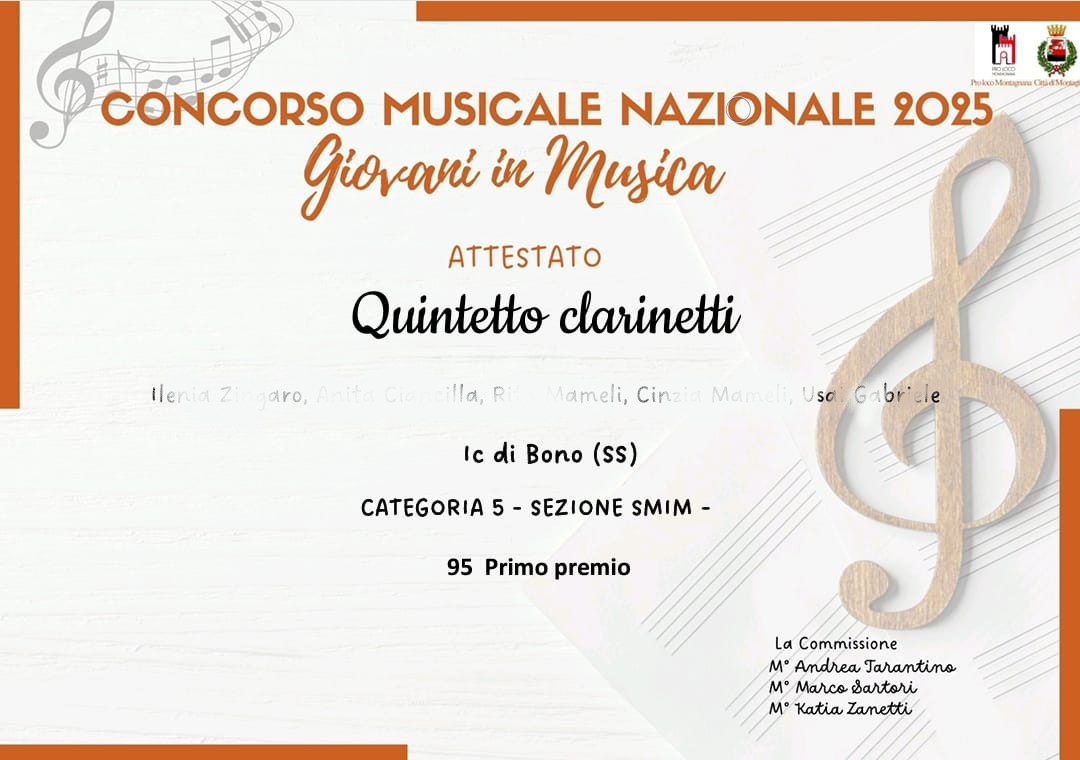 Complimenti ai giovani musicisti della classe di clarinetto 2C - Indirizzo Musicale Scuola Secondaria Bono e al loro docente per i traguardi raggiunti